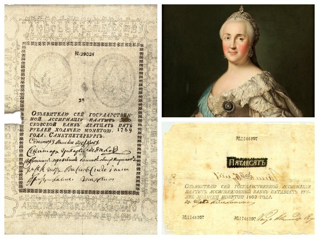 это было сегодня.... 29 декабря 1768 года был выпущен Высочайший манифест за подписью Екатерины II, на основании которого в Российской империи впервые вводились бумажные деньги, названные императрицей ассигнациями