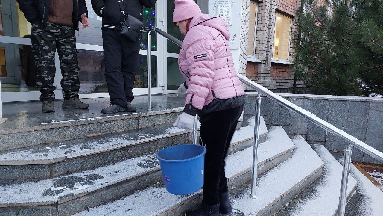 Чтобы уменьшить риск аварийности и травматизма, спецтехника посыпает дороги песком, а люди обрабатывают тротуары противогололедными материалами.