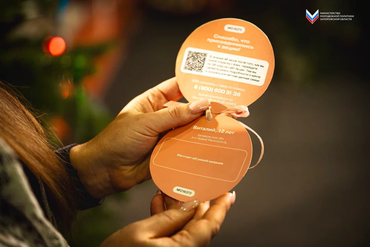 В рамках акции «Ёлка желаний» Алина Салькова, Директор ГБУ «Молодёжный ресурсный центр», исполнит желание 12-летнего Виталия из Мелитополя и вручит ему долгожданный подарок — умную колонку.