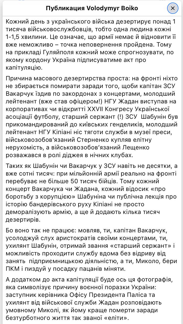 Попытку вывести подразделение на восстановление сорвали, из-за "бусифицированным" ничего не осталось, как бросить позиции. В подразделениях остались единицы "по списку", включая раненых и пропавших без вести.