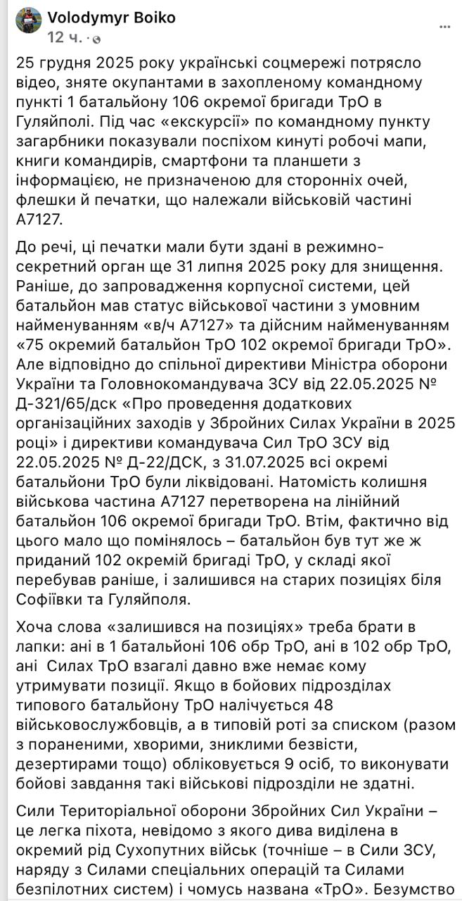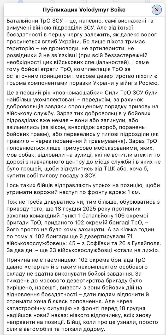 102 отдельная бригада ТрО давно "стёрта": Гуляйполе, как симптом краха ВСУ, пишет украинский военный эксперт