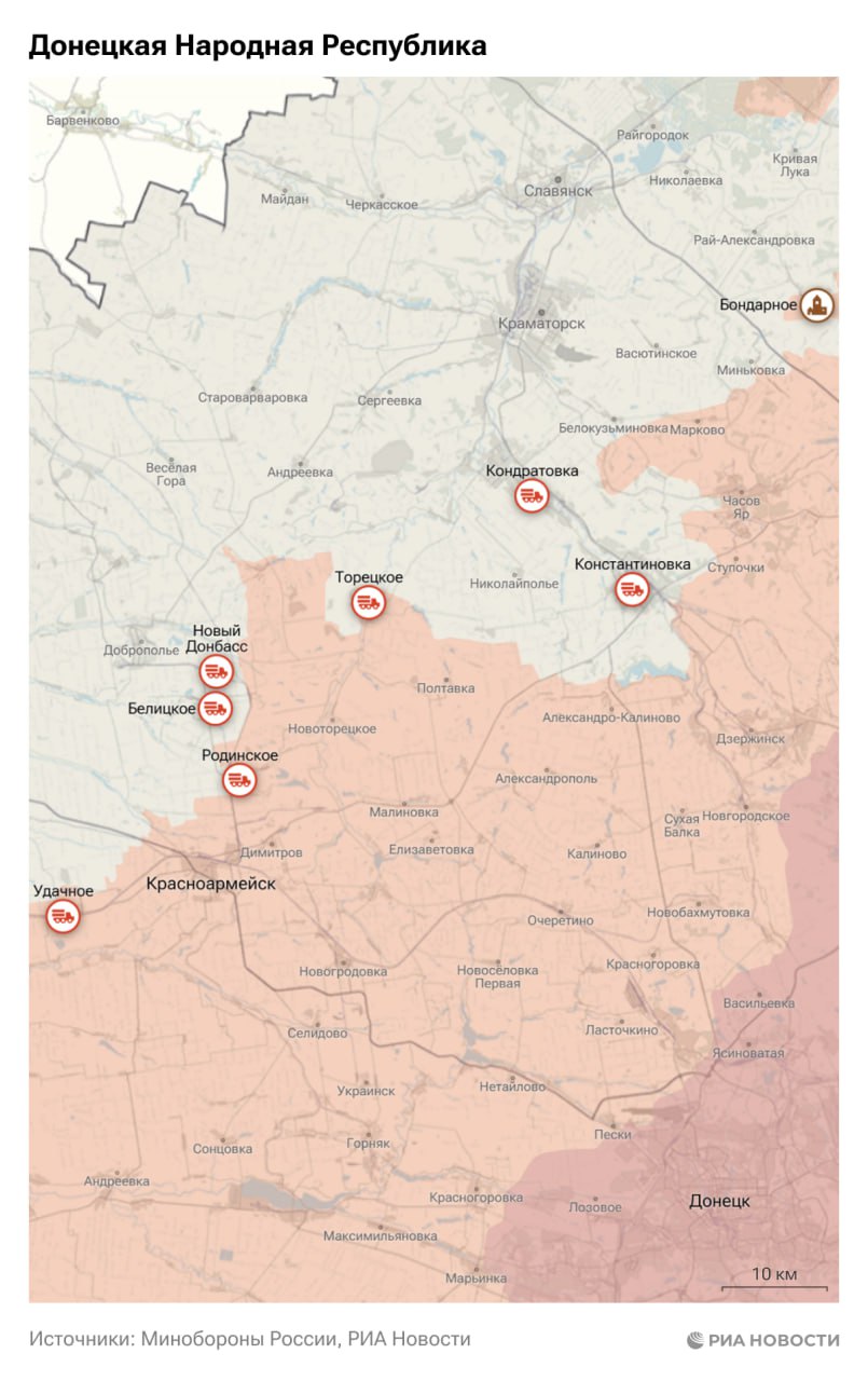 Российская армия освободила Бондарное в ДНР, сообщили в Минобороны.