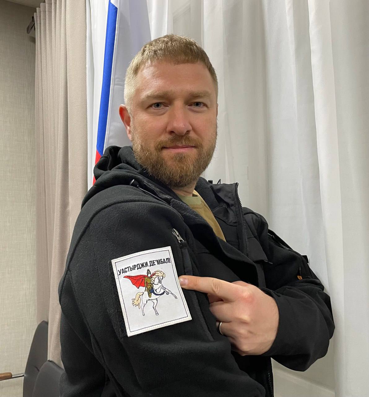 Во время встречи Сергей Иванович снял с собственного плеча шеврон и подарил его мне. На шевроне вышита фраза «Уастырджи де 'мбал», что переводится как «Да пребудет с вами Святой Георгий!». Бойцы также наносят эту надпись на военную технику.