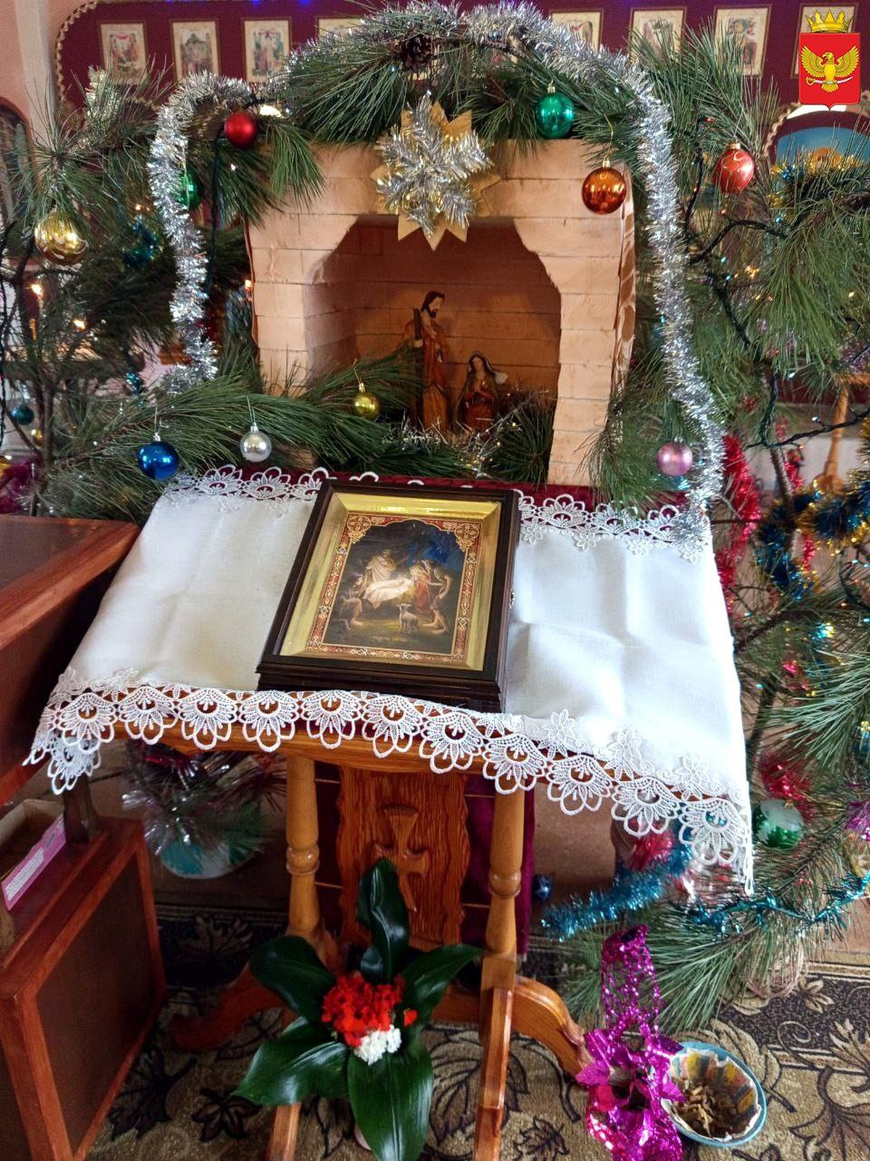 В праздник Рождества Христова взрослые и юные участники Зеленовских сельских клуба и библиотеки посетили церковную службу и пообщались с настоятелем храма Александра Невского - отцом Геннадием.