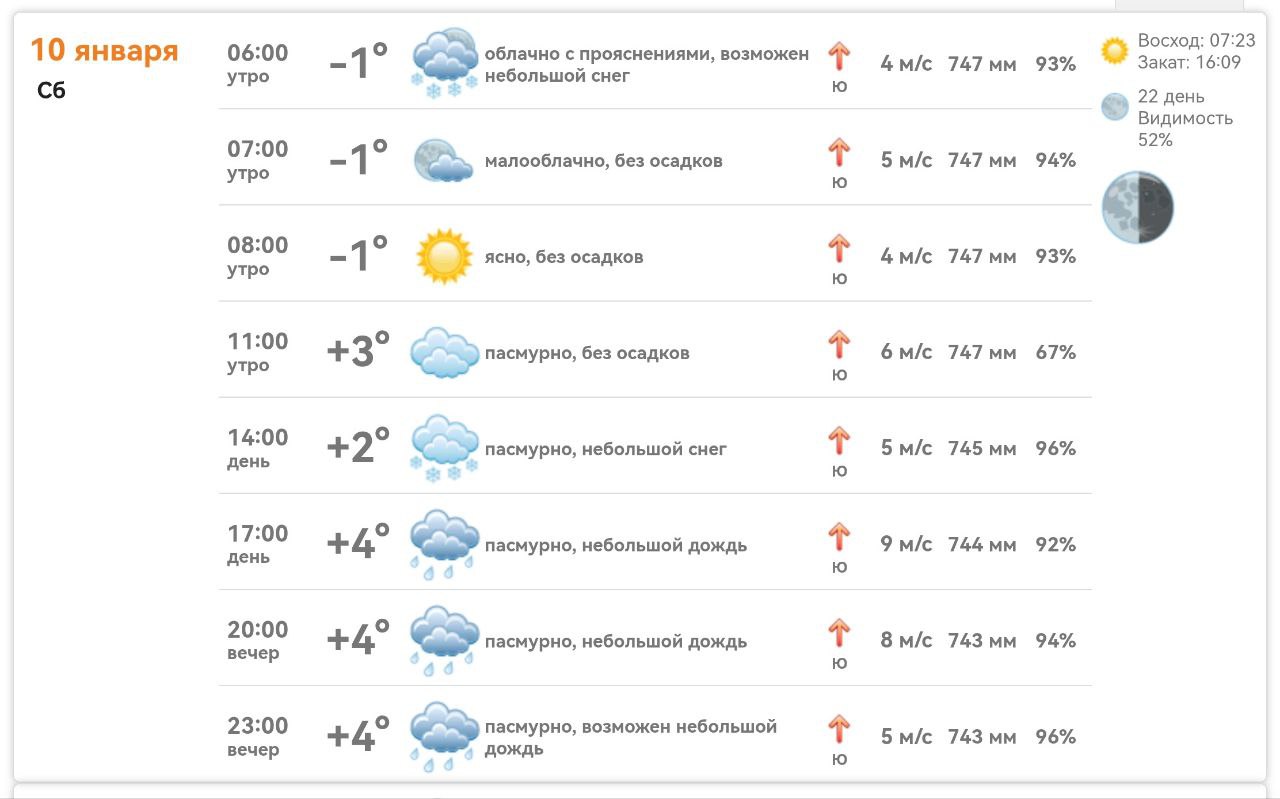 облачно с прояснениями. Местами небольшие и умеренные осадки в виде дождя, переходящего в мокрый снег и снег, днем в отдельных районах сильные осадки. Местами налипание мокрого снега на проводах и деревьях, ночью и утром туман, днем – гололед, метель....