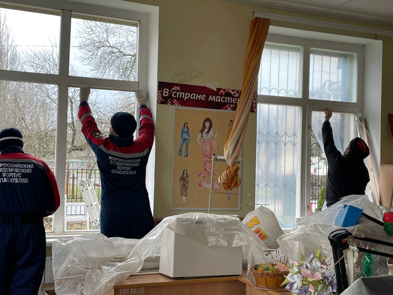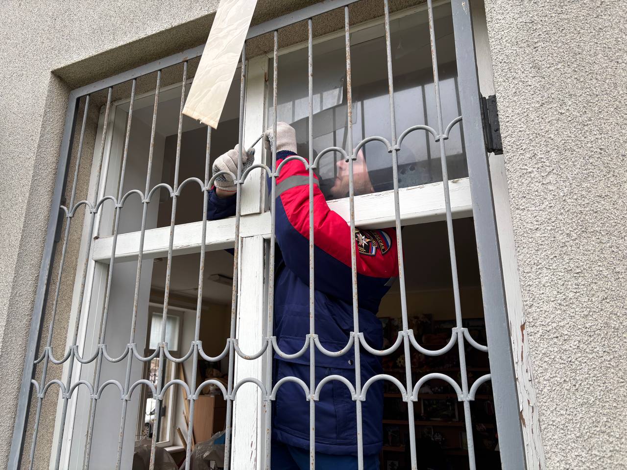 Сегодня мы оказали помощь Центру социального обслуживания населения. Как и в школе, где работы велись вчера, здесь были повреждены оконные проемы.