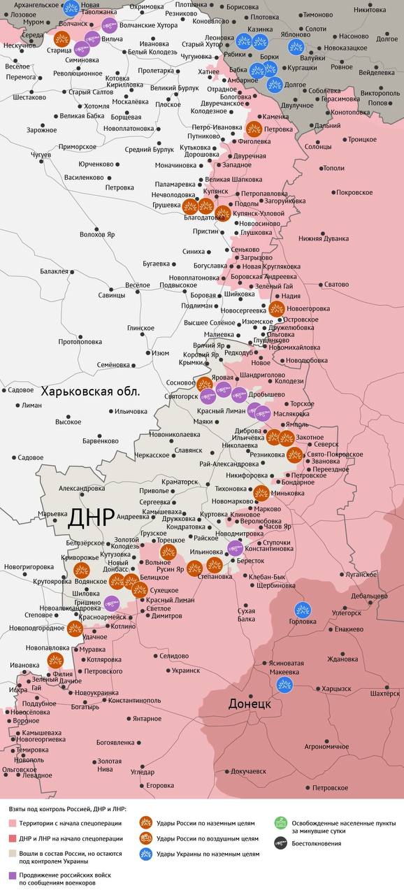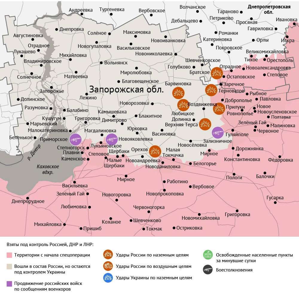 Российская армия продвигается в районе Гуляйполя, где после перегруппировки начала новое наступление на села, лежащие за рекой Гайчур. Также отмечаются успехи ВС РФ на других участках фронта.