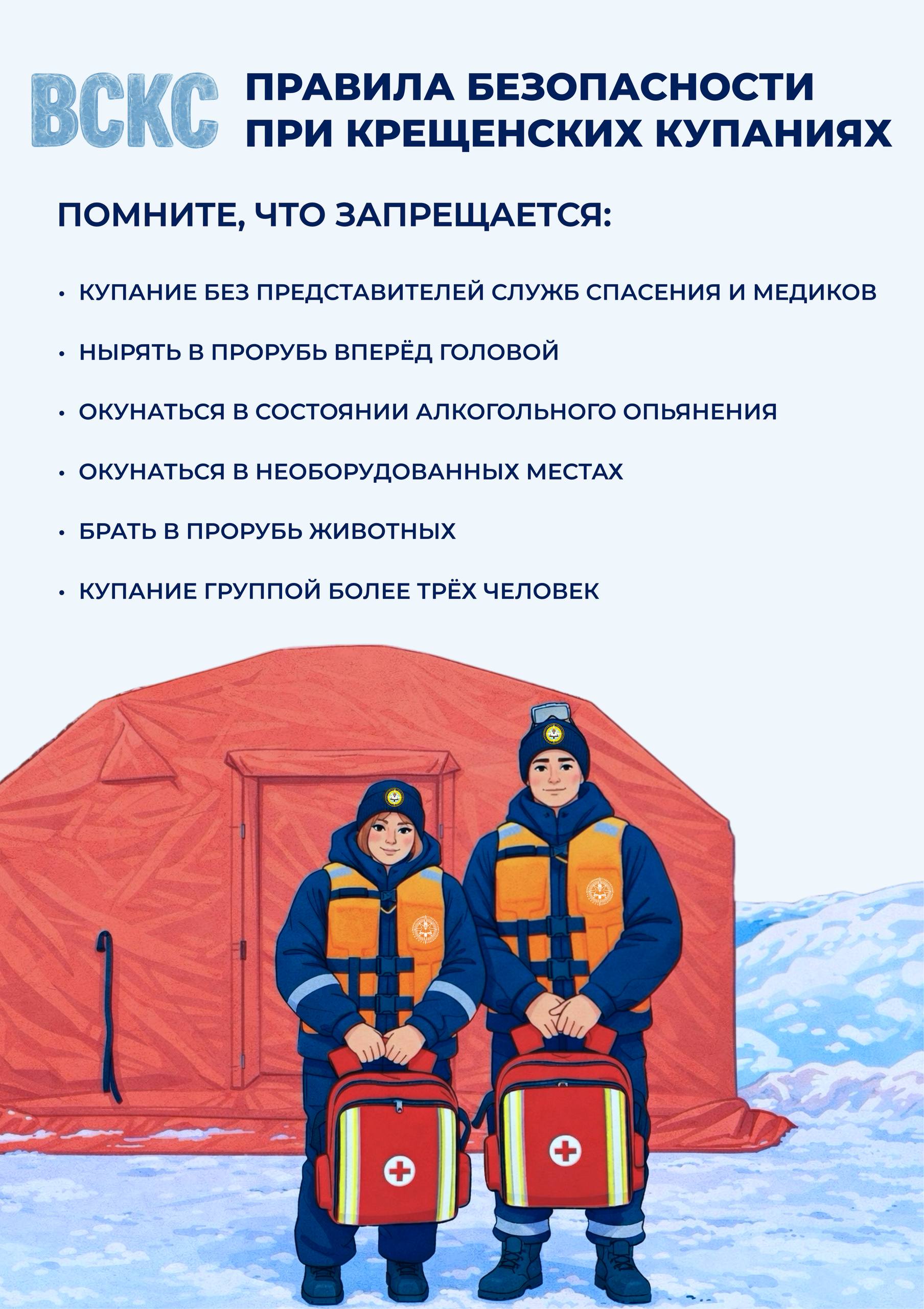 Планируете окунуться в прорубь в ночь с 18 на 19 января? Чтобы купание прошло без вреда, важно соблюдать правила. Скорее читайте памятку ВСКС