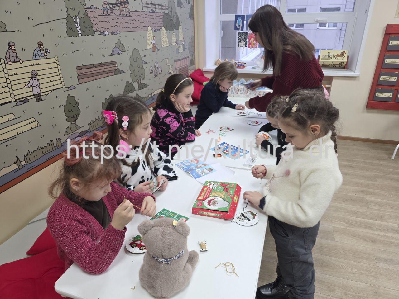 В Детском музейном центре ДК "Горняк" прошёл мастер-класс из серии "Новогодняя вышивка"!