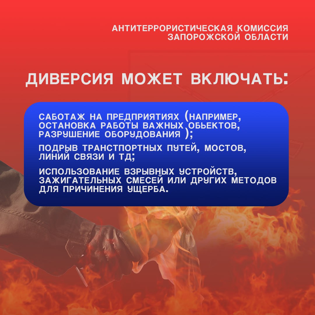 АТК ЗАПОРОЖСКОЙ ОБЛАСТИ ПРЕДУПРЕЖДАЕТ О НАКАЗАНИИ ЗА УЧАСТИЕ В ДИВЕРСИИ