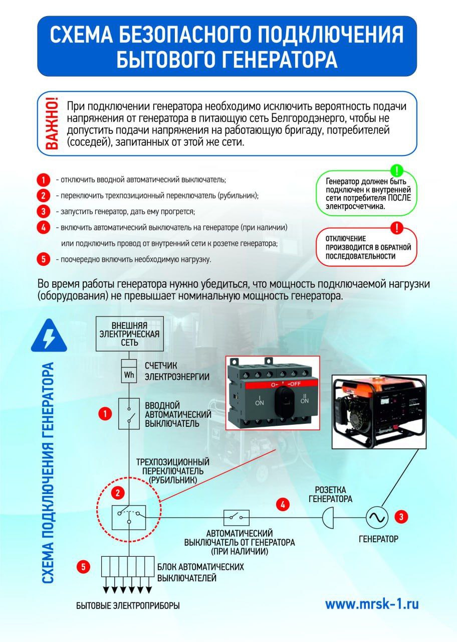Администрация Приморского муниципалитета напоминает жителям о безопасном подключении бытовых дизельных и бензиновых генераторов!