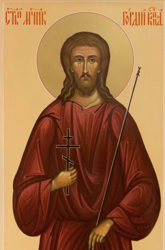 Мученик Христов Гордий родился в Кесарии Каппадокийской от благочестивых родителей-христиан и был воспитан в страхе Божием и православной вере. Достигнув возмужалости, он поступил на военную службу и за крепость тела и силу духа возведен в чин сотника, превосходя многих доблестью.