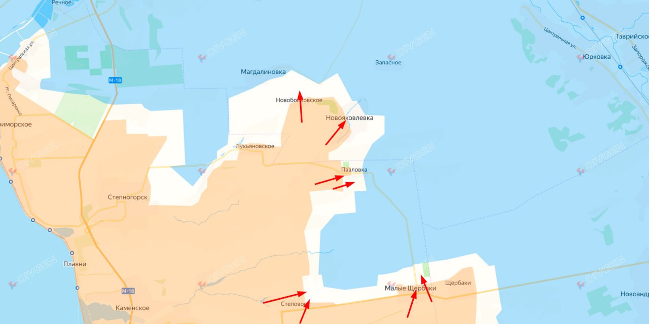 На южном участке подразделения ВС РФ продвинулись к северо-востоку от Степового, заняв новые полосы лесопосадок и деревьев в направлении Малые Щербаки. Эти действия ухудшают тактическое положение ВСУ, лишая их укрытий и наблюдательных пунктов, а также создают угрозу флангового давления на соседние опорные пункты. На данные момент идет закрепление а большая часть рядом с селами стали "серой зоной", где ВСУ приходится обороняться со всех сторон.