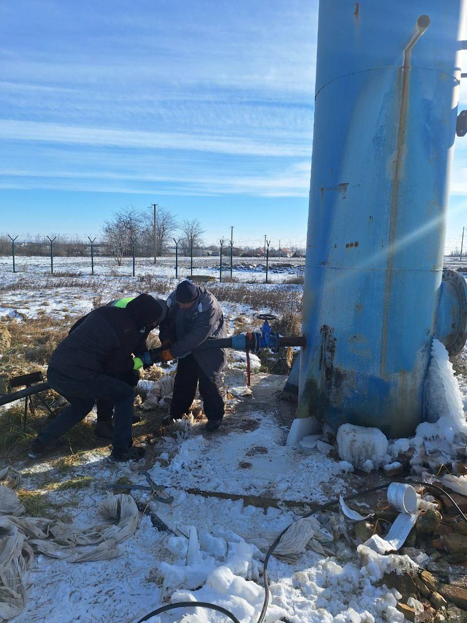 Сотрудники СВКХ «Терпенье» все эти дни вели работы по восстановлению водоснабжения и отогреву башен Рожновского, вследствие прекращения подачи электроэнергии и сильных морозов