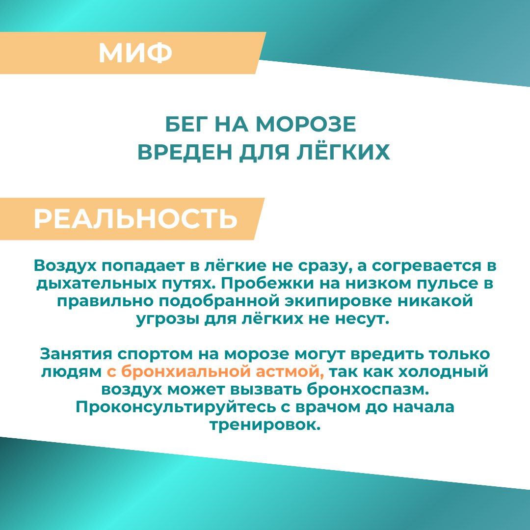 Собрали в карточках мифы о зимних тренировках