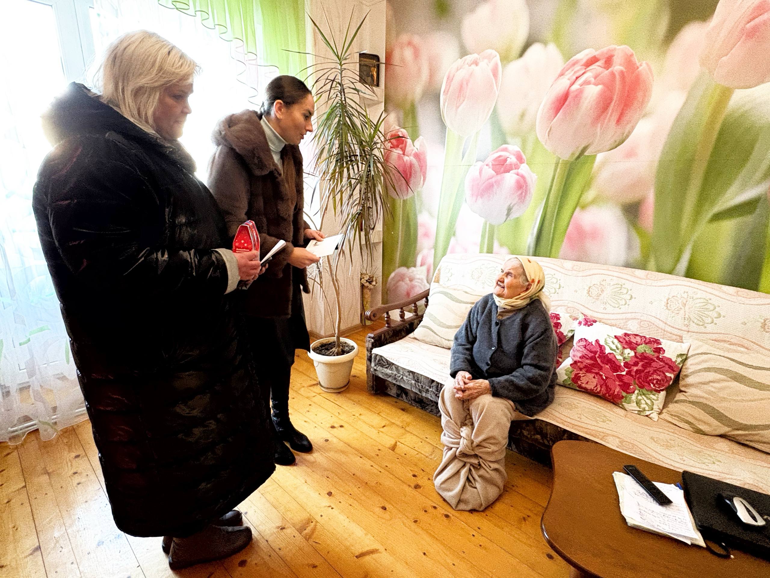 В ходе встречи долгожительницам были вручены персональные поздравительные письма от Президента Российской Федерации Владимира Владимировича Путина, а также сладкие подарки и цветы.