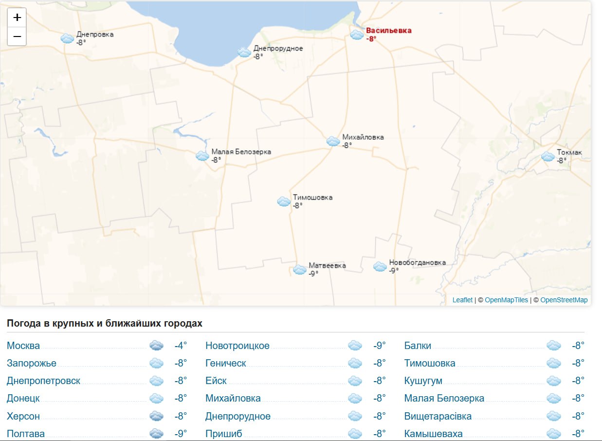 Погода 20 января 2026 года в крупных и ближайших к Васильевке городах и населённых пунктах.