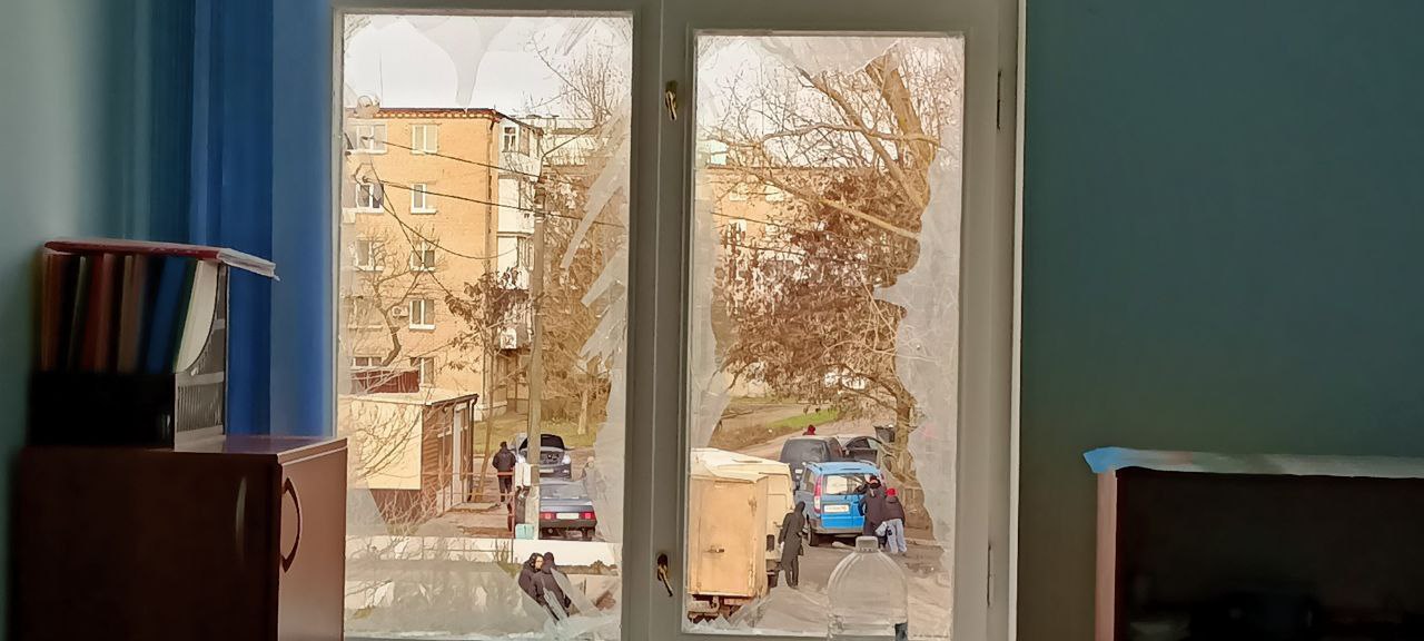 После атаки БПЛА на здание ГБУ «Комплексный центр социального обслуживания населения» МТ и СП ЗО обособленного подразделения г. Бердянска, повлёкшей значительные разрушения, была оперативно организована работа по его восстановлению.