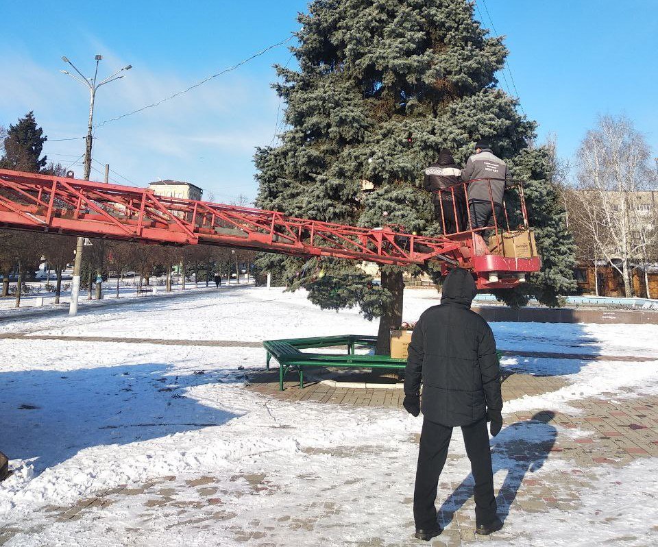 Крещение Господне завершило цикл новогодних праздников и святок, поэтому сотрудники МУП УК «Контакт» сегодня приступили к демонтажу новогодних декораций