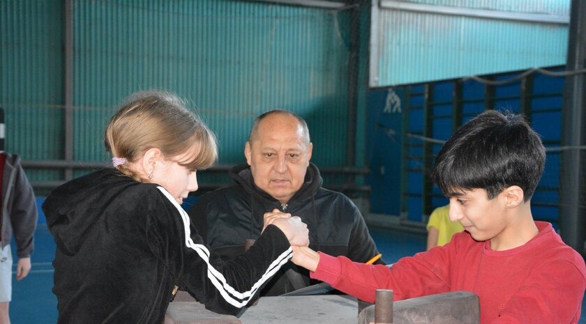 На базе спортивной школы «Таврия» ребята попробовали свои силы в перетягивании каната, армрестлинге, волейболе и других спортивных играх.