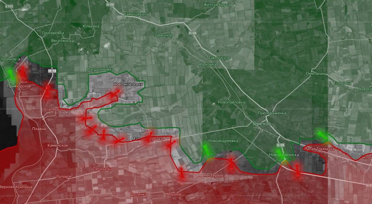 Активизировались бои на подступах к Орехову с рубежа Щербаки – Нестерянка.