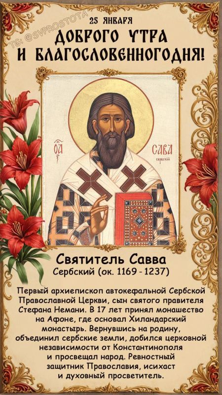 оброго утра, Сегодня Православная Церковь чтит память святой мученицы Татианы Римской и святителя Саввы Сербского.