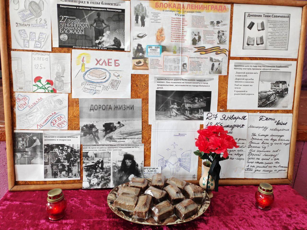 Учащиеся школы приняли участие во всероссийской акции «Блокадный хлеб» и подготовили выставку детских рисунков «Краски памяти».