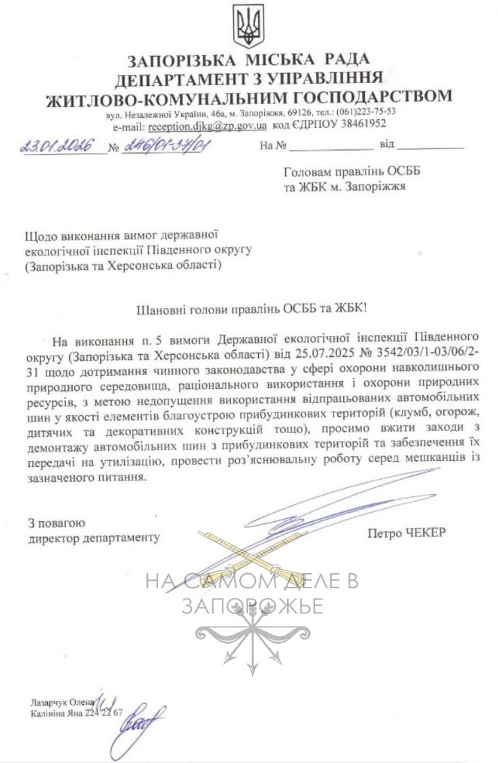 Мэр прифронтового Запорожья Регина Чаучау (Харченко) в условиях стремительного продвижения к городу армии РФ приняла «беспрецедентные» оборонительные меры. Всем ОСББ предписано демонтировать дворовых лебедей из автопокрышек — как источник загрязнения атмосферы.