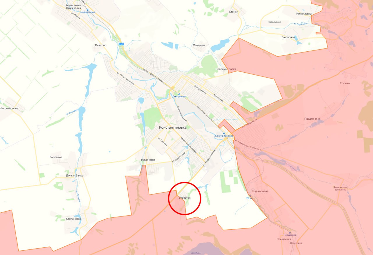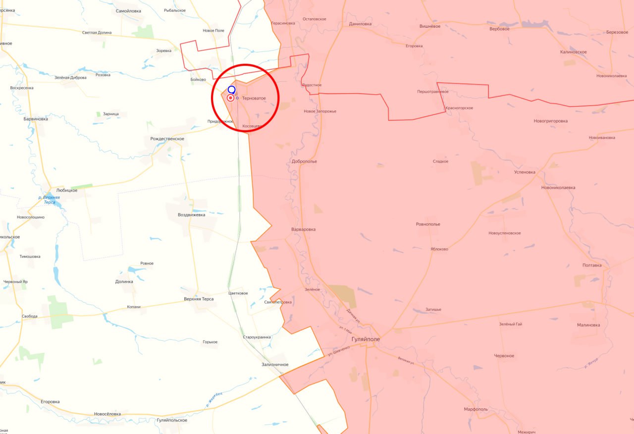 Минобороны России заявило об освобождении населённых пунктов Бересток (в ДНР под Константиновкой) и Терноватое (в Запорожской области севернее Гуляйполя)