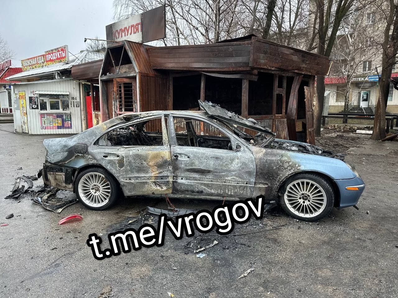 Автомобиль сгорел полностью, также повреждено здание магазина, возле которого был припаркован автомобиль.