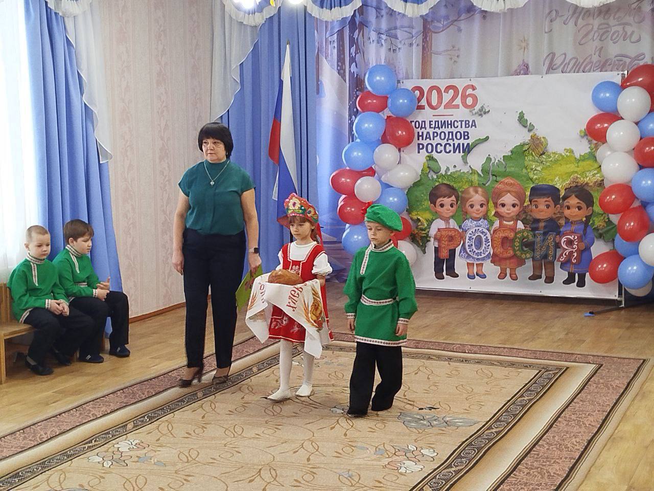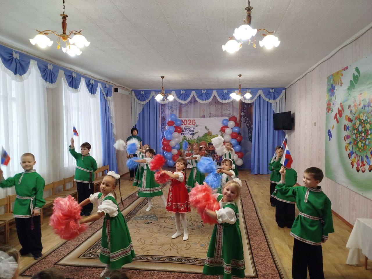 Воспитанники в национальных костюмах представили концертные номера, включая танец «Русская берёзка» и флешмоб «Россия вперёд!».