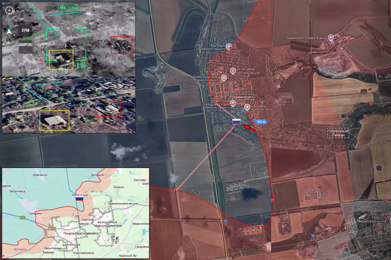 Передовая позиция ВС РФ в жилой застройке Родинского обстреляна ВСУ. ВС РФ продвинулись в южной части города на 500 метров и заняли новые позиции.