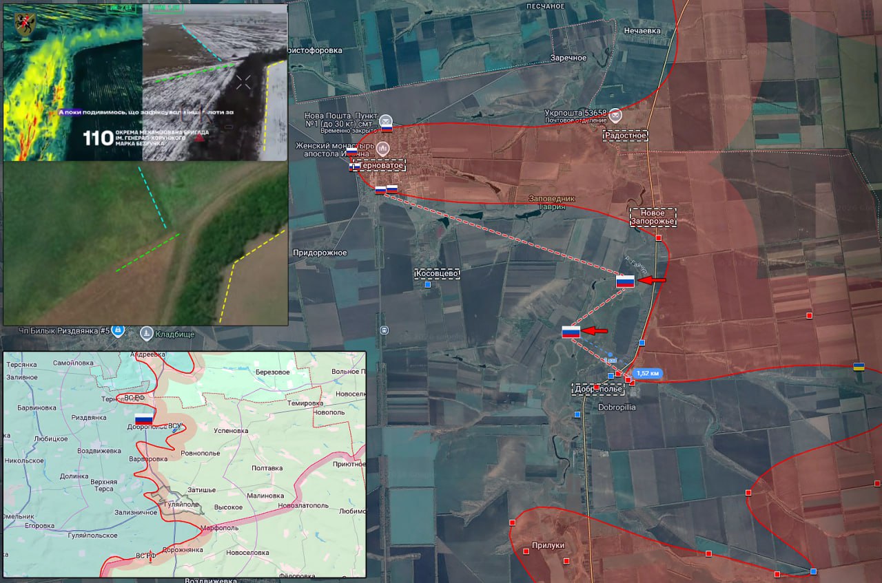 Передовые позиции ВС РФ около Доброполья под обстрелом ВСУ.