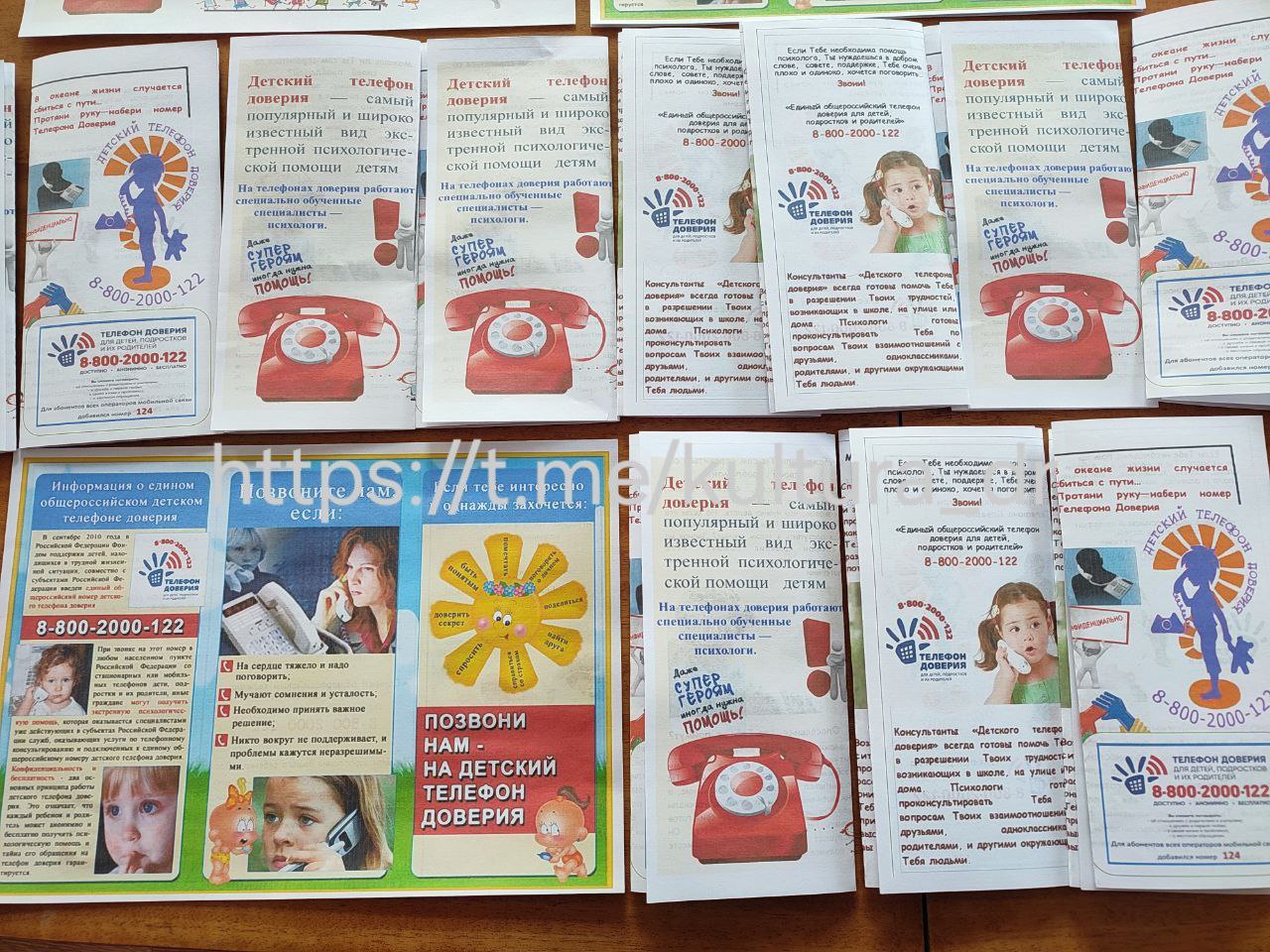 В завершении мероприятия всем присутствующим были выданы буклеты "Телефон доверия — шаг к безопасности!", содержащие номер единого общероссийского телефона доверия +78002000122 и короткий номер 124 для мобильных телефонов. Эти номера доступны бесплатно, круглосуточно и анонимно.