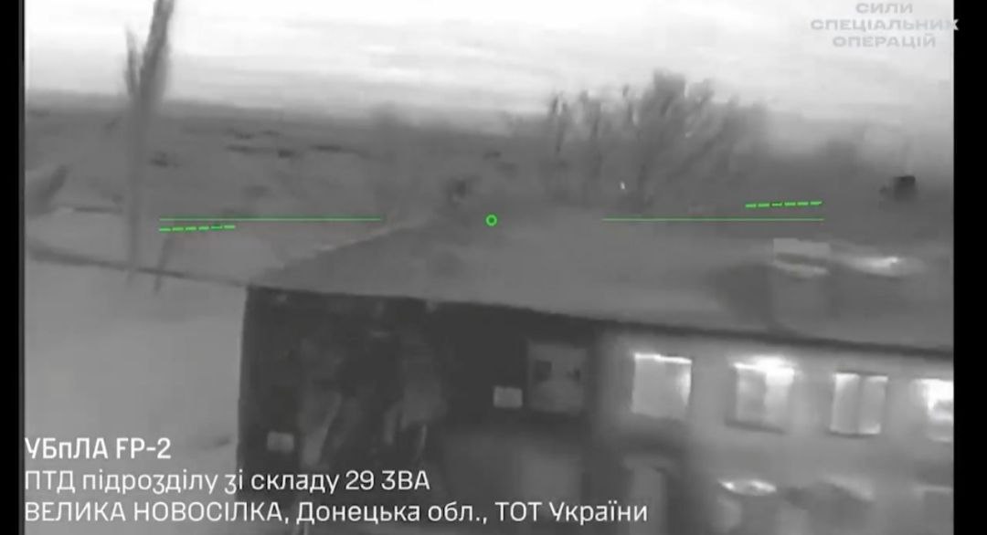 Силы специальных операций Украины опубликовали сегодня видео ударов БПЛА FP-2 по ангарам и домам в Запорожской области и ДНР.