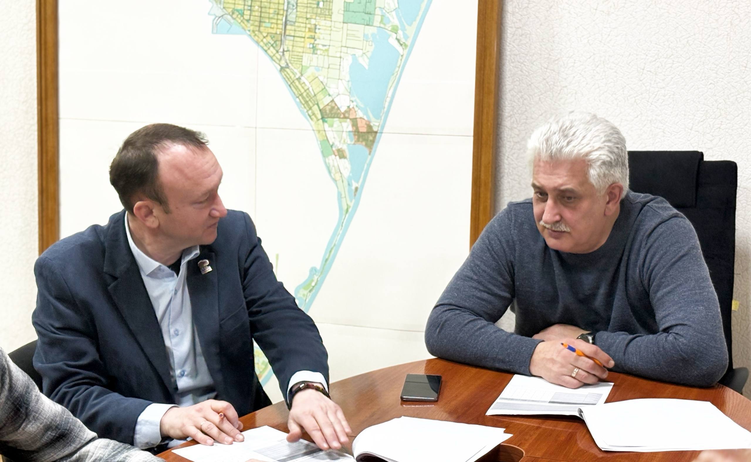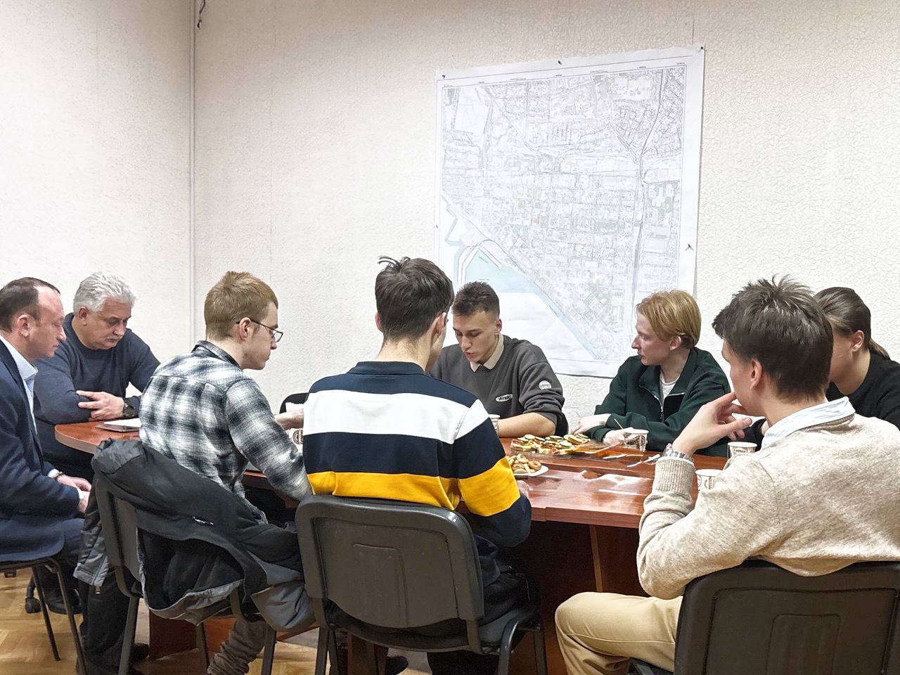 В Бердянске студенты обсудили цели и методику исследования с Главой города Андреем Ковганко, Секретарём местного отделения партии «Единая Россия» и Председателем Бердянского городского Совета депутатов Василием Нечетом.
