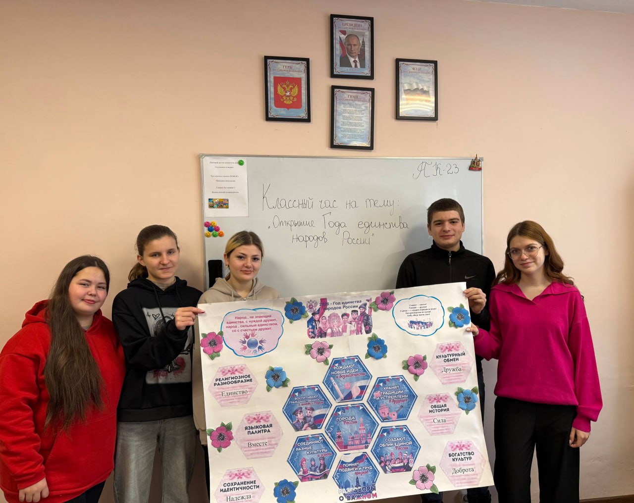 В ходе классных часов кураторы рассказали студентам о ключевых задачах и ценностях Года единства, подчеркнули важность уважения культурных особенностей и традиций народов России.