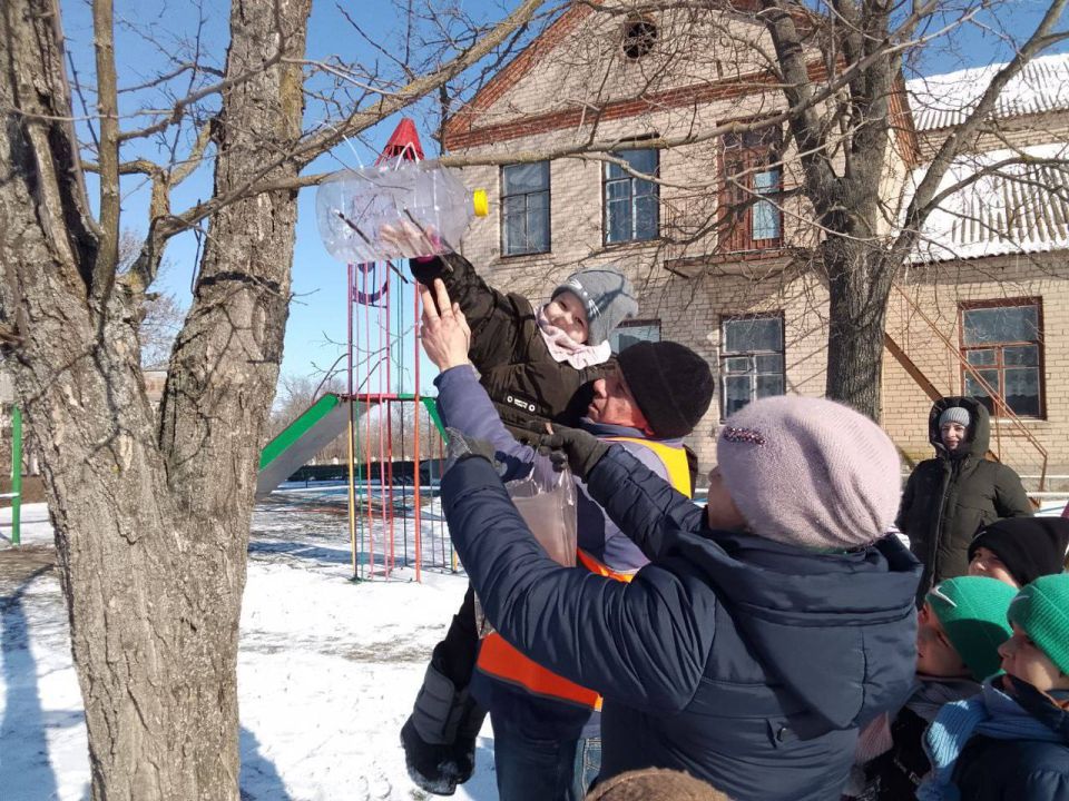 Ребята с гордостью развешивали на ветках деревьев сделанные с помощью взрослых кормушки и тут же наполняли их кормом, с нетерпением ожидая первых крылатых гостей.