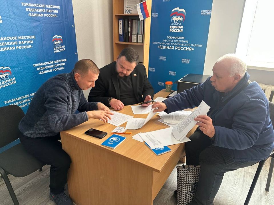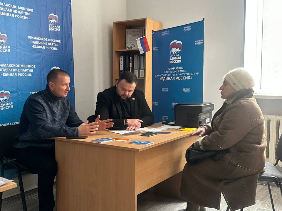 В общественной приемной местного отделения партии «Единая Россия» депутат Законодательного собрания Запорожской области Владимир Епифанов совместно с председателем Токмакского окружного совета депутатов Валерием Опарой и прокурором Токмакского района Сергеем Разумовским провели прием граждан