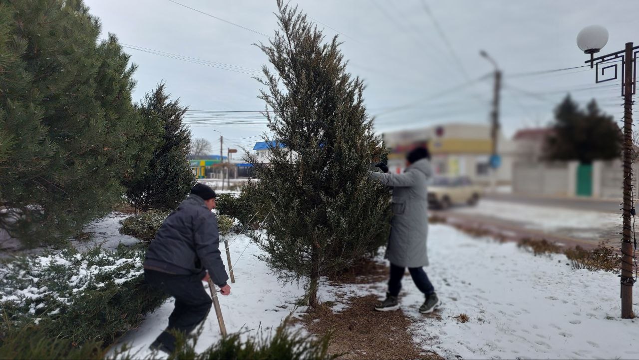 Также произвели подвязку некоторых деревьев, чтобы повысить устойчивость растения от снеговых нагрузок и предотвратить ветровые повреждения.