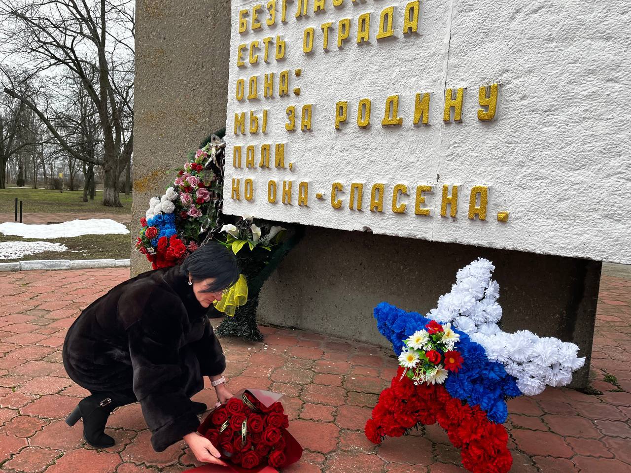 Секретарь местного отделения возложила цветы к памятнику советским воинам в годовщину освобождения Каменки-Днепровской