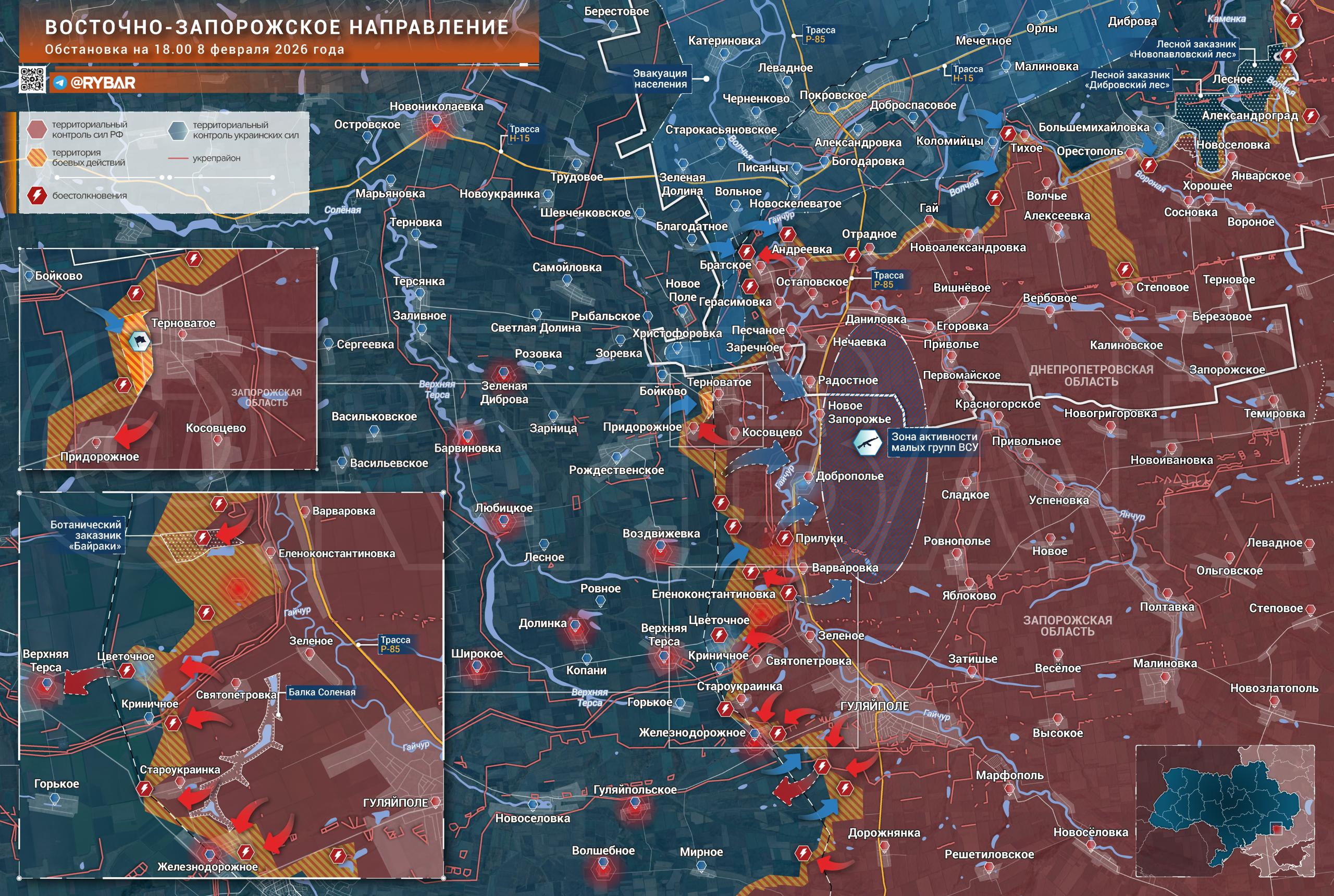 На южном фланге направления обстановка складывается более благоприятно. Штурмовики, продвигаясь со стороны Святопетровки, выбили противника из окрестностей нескольких прудов на подступах к Цветковому. Передовые группы уже достигли окраин села, однако говорить об их закреплении пока преждевременно.