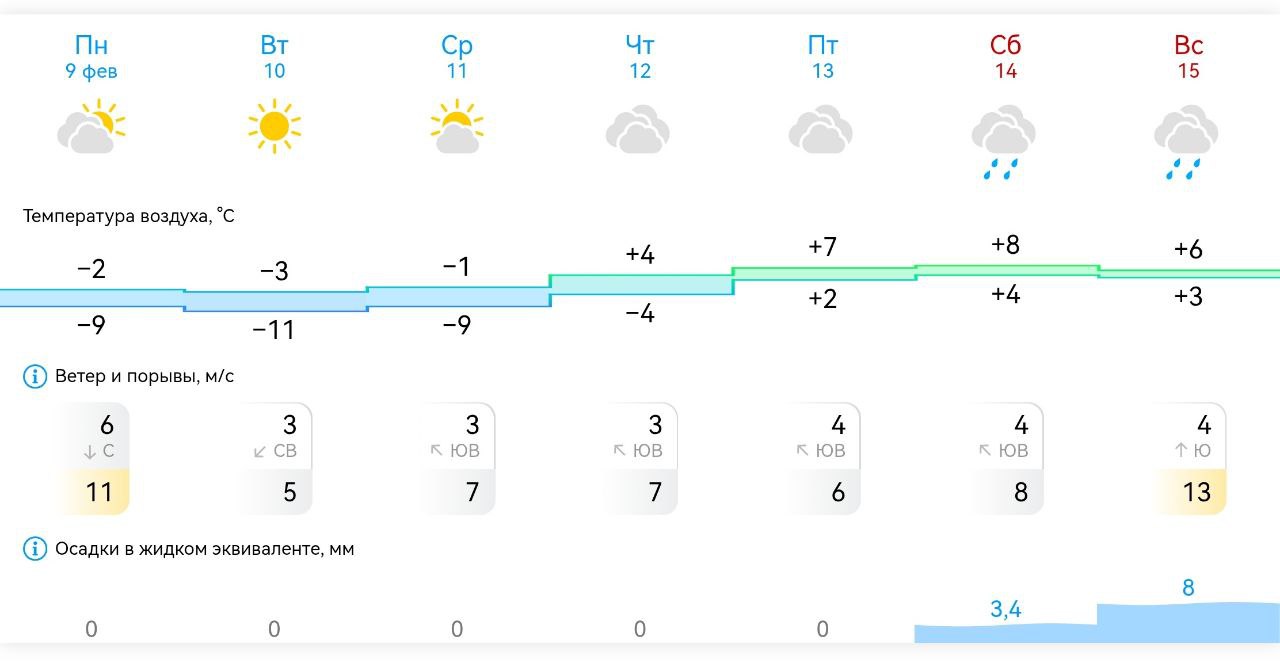Погода в Михайловке Запорожской области на неделю с 9 февраля по 15 февраля 2026 года.