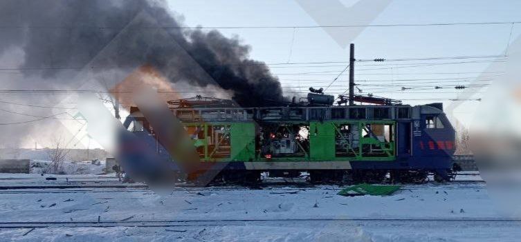 В Сумской обл поражена ж/д инфраструктура (на фото 1-2 – повреждённый электровоз в Конотопе). Второй день после атаки «Гераней» горит Качановский газоперерабатывающий завод.