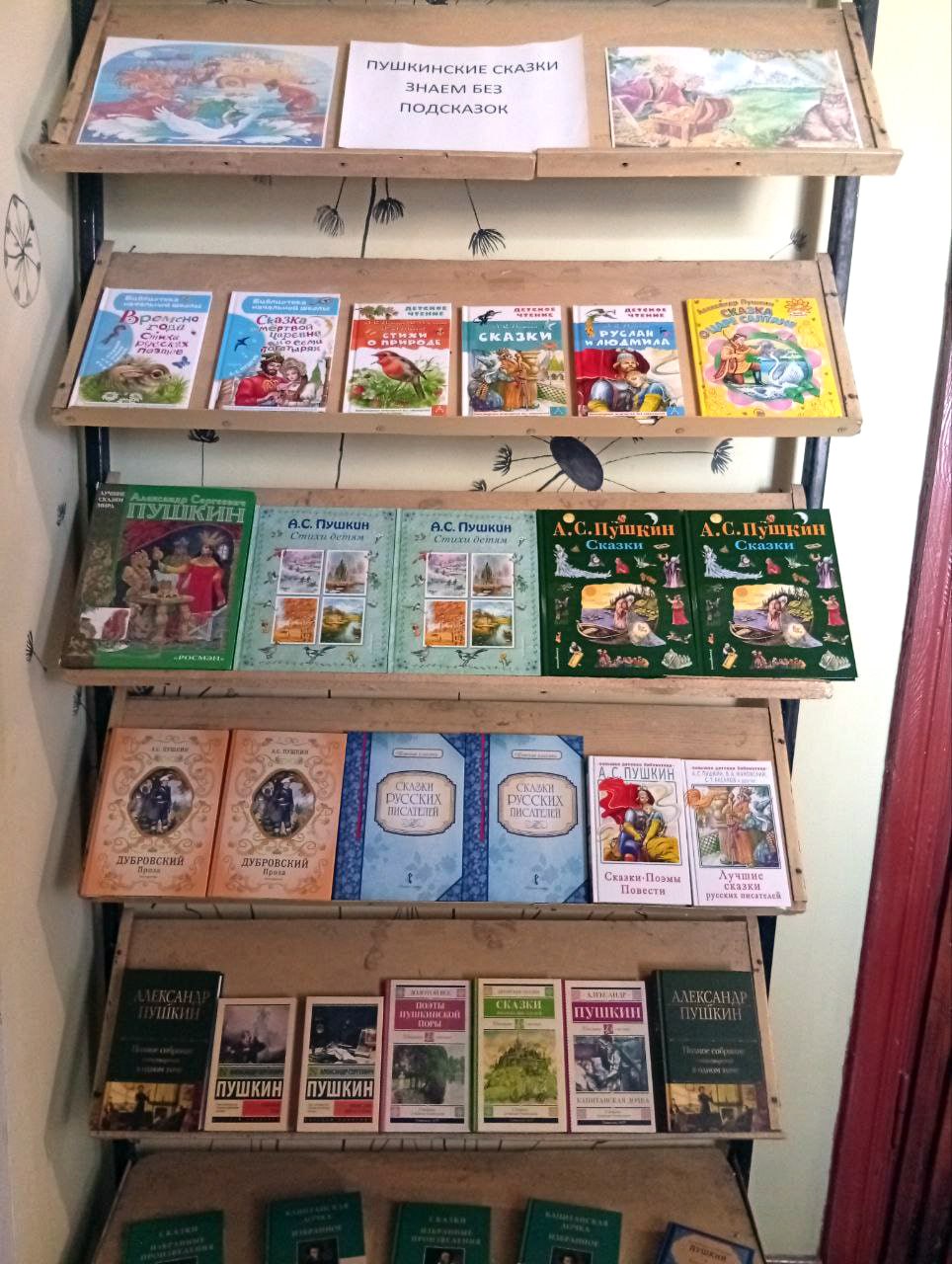 Также ко Дню памяти Пушкина в библиотеке оформлена тематическая книжная выставка, где вниманию читателей представлены произведения великого русского писателя.
