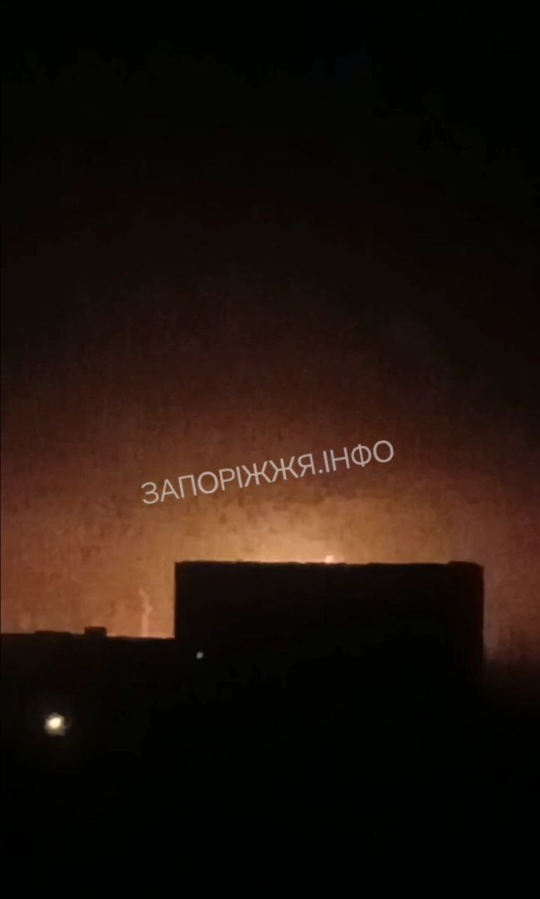 Мощный пожар в оккупированном ВСУ Запорожье.Местные паблики сообщают о попадании по объекту энергетической инфраструктуры.Зарево видно за много километров.Подпишись в MAX@voenkorKotenok