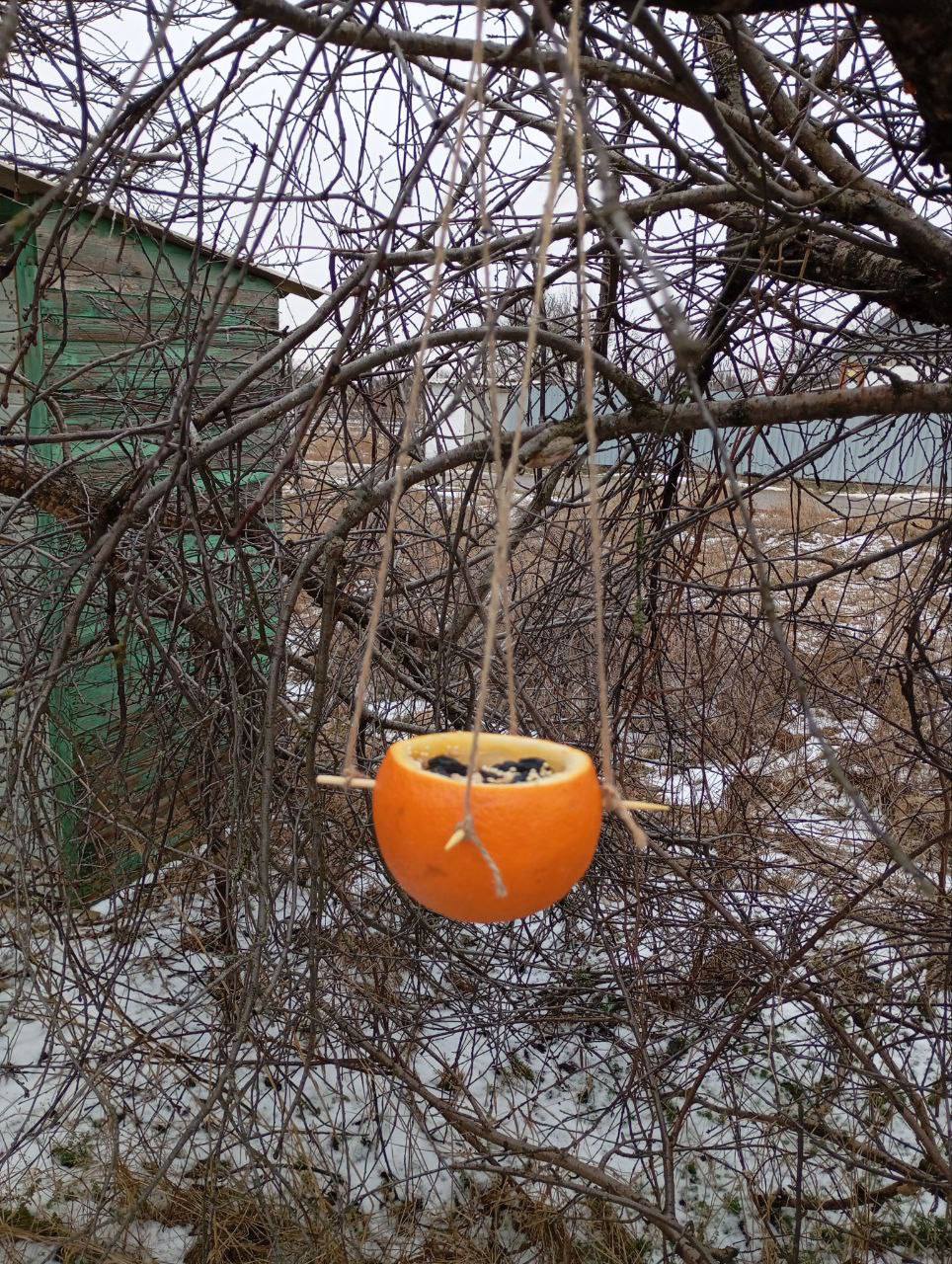 Кормушка из апельсина – яркая и ароматная! Кормушка из яблока – просто и вкусно для пернатых! Съедобные "бусы" из сухофруктов – настоящее лакомство! Кормушка "каруселька" – получилась очень забавной!