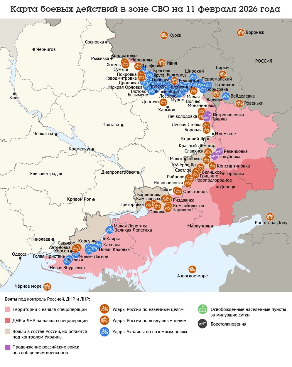 Карта боевых действий в зоне СВО на 11 февраля 2026 года
