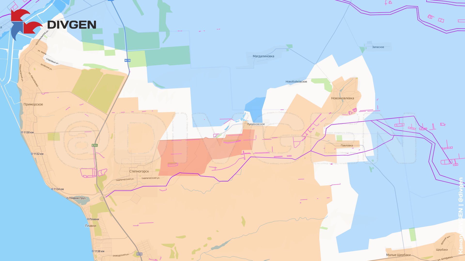 Изменение ситуации на Запорожском направлении. Под контроль российских десантников перешла территория Степногорской солнечной станции. ВСУ же сконцентрировали усилия на контратакующих действиях в направлении Лукьяновского. По имеющейся информации, в селе сейчас бои, контроль примерно 50/50.