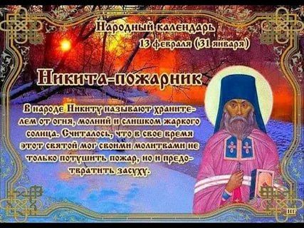 13 февраля - отмечается Никита-пожарник. В эту дату православные верующие чтят память святителя Никиты Печерского, епископа Новгородского.